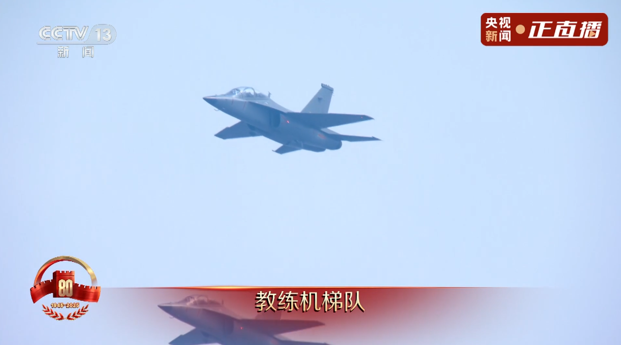 9月3日上午,由5架教10飞机、5架歼10S飞机组成的教练机梯队出场,接受祖国和人民检阅。