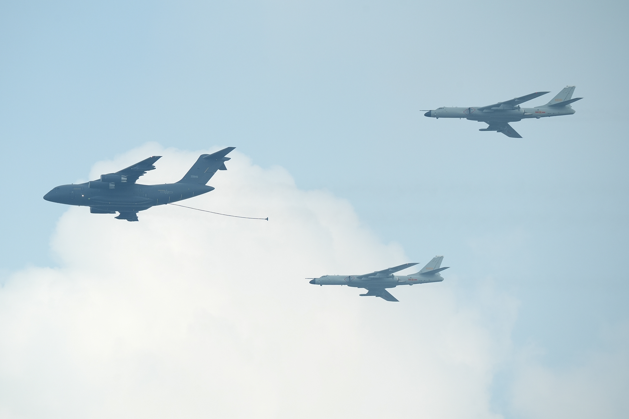 加受油机梯队,3架运油20A时刻准备为轰6N、歼16、歼20飞机加油。摄影:郑宇航